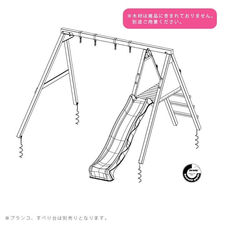 木材、すべり台、ブランコは含まれておりません。